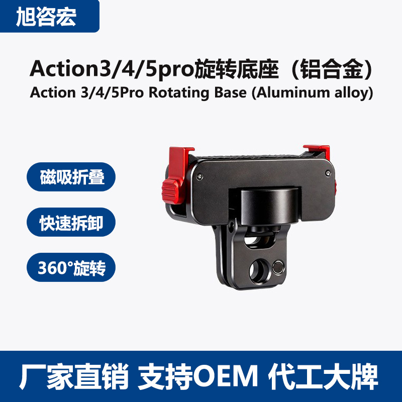 批发大疆Action3/4/5pro铝合金快拆旋转磁吸底座减震运动相机配件