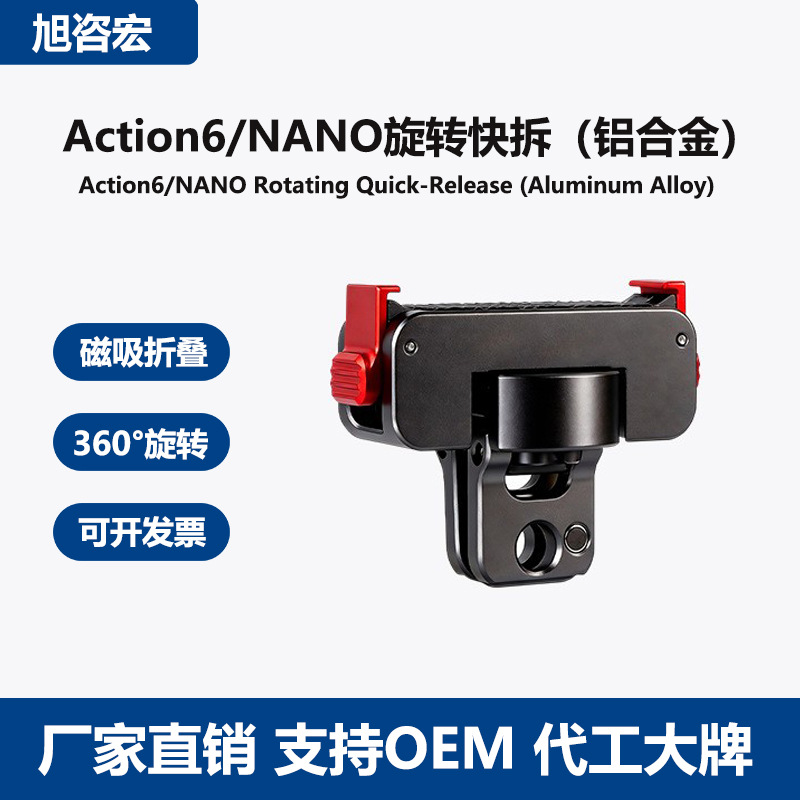 批发大疆Action6/NANO运动相机快拆配件铝合金旋转磁吸底座减震