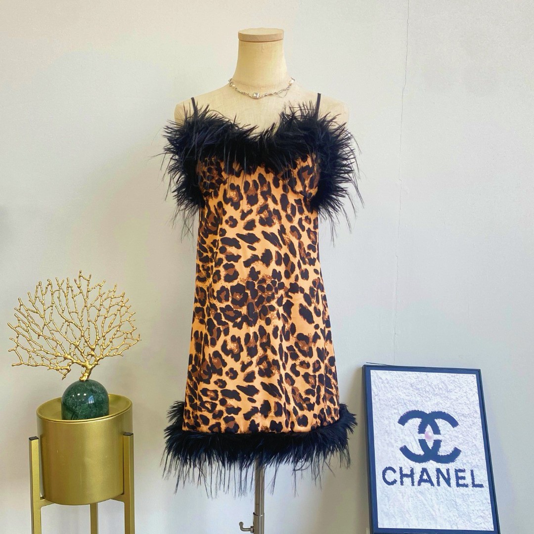 跨境外贸新款欧美性感豹纹吊带睡衣睡袍女羽毛花边睡裙家居服套装