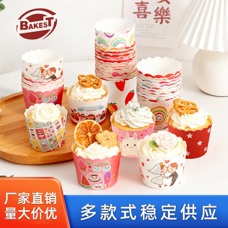 厂家图案设计郁金香蛋糕纸杯耐高温防油纸托火焰杯烘焙玛芬麦芬