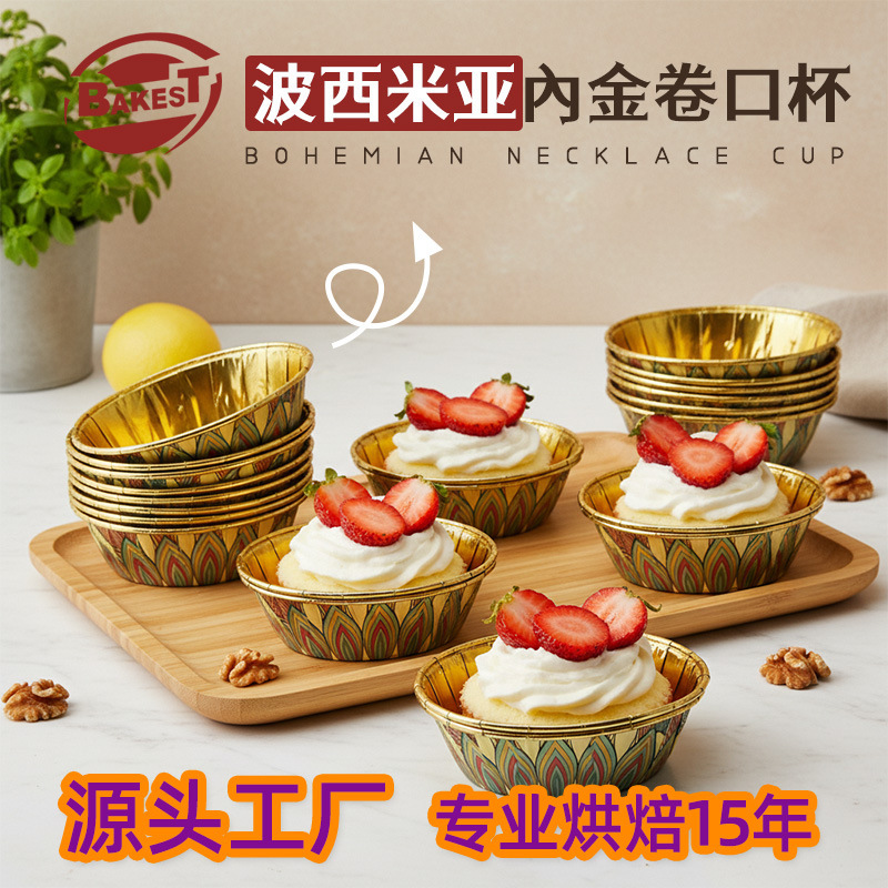 跨境热卖波西米亚双面金卷口杯蛋糕纸杯一次性加厚防油耐高温烘焙
