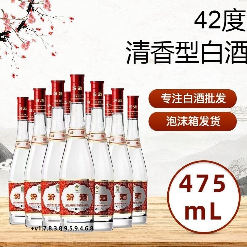 山西杏花.村红盖汾.酒42度475ml*12瓶装口粮清香型白酒-泡沫箱发