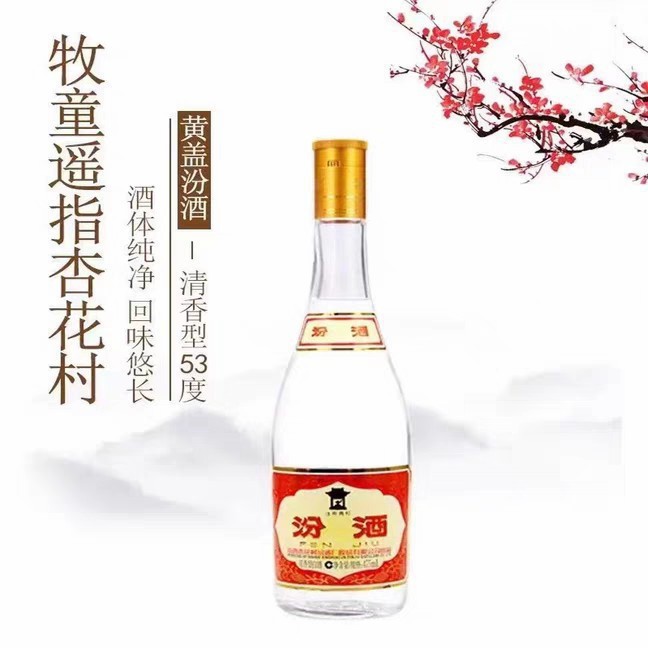 山西杏花.村黄盖汾.酒53度475ml*12瓶装口粮清香型白酒-泡沫箱发