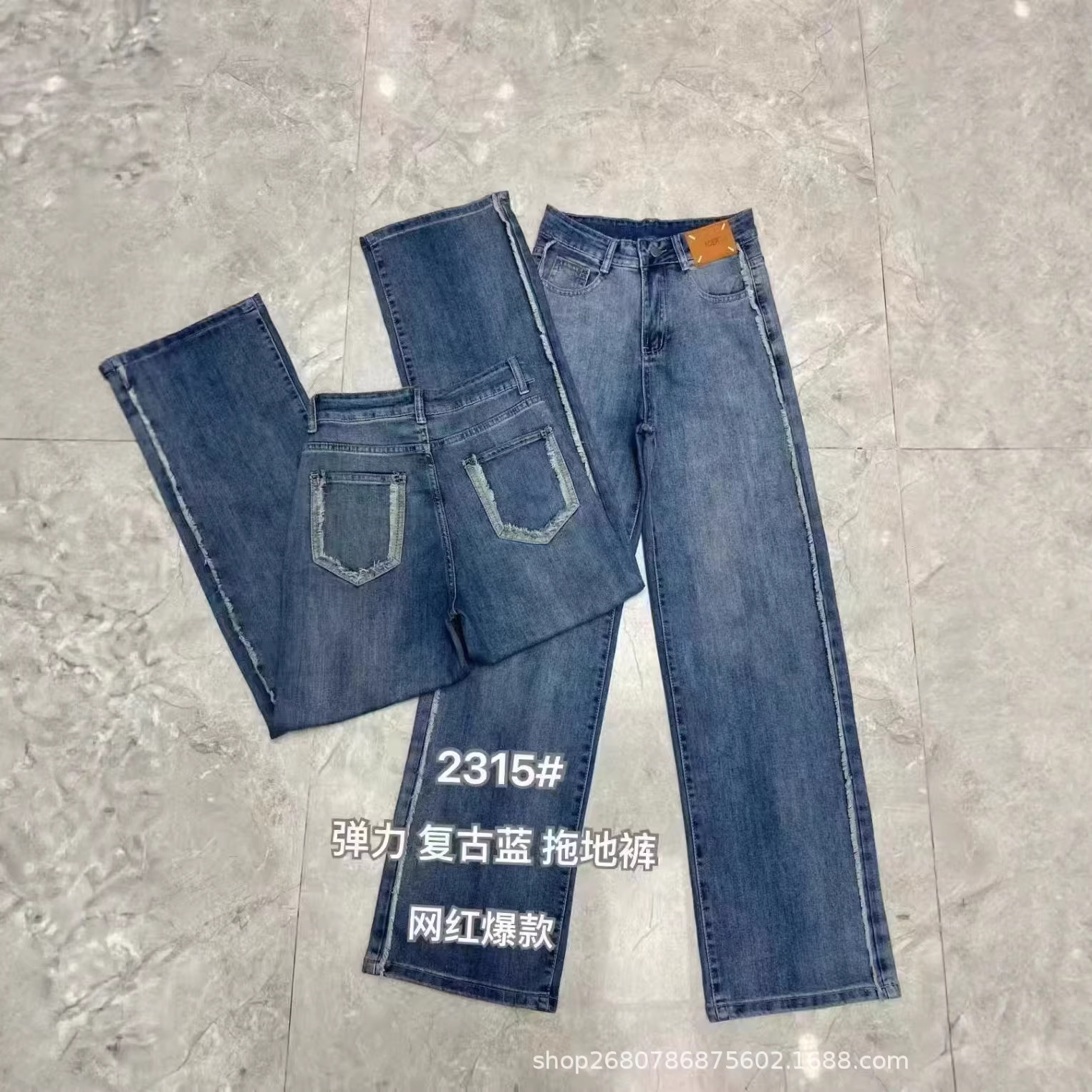 广州十三行爆火女装牛仔裤全新出口泰国设计感牛仔裤女直筒阔腿裤