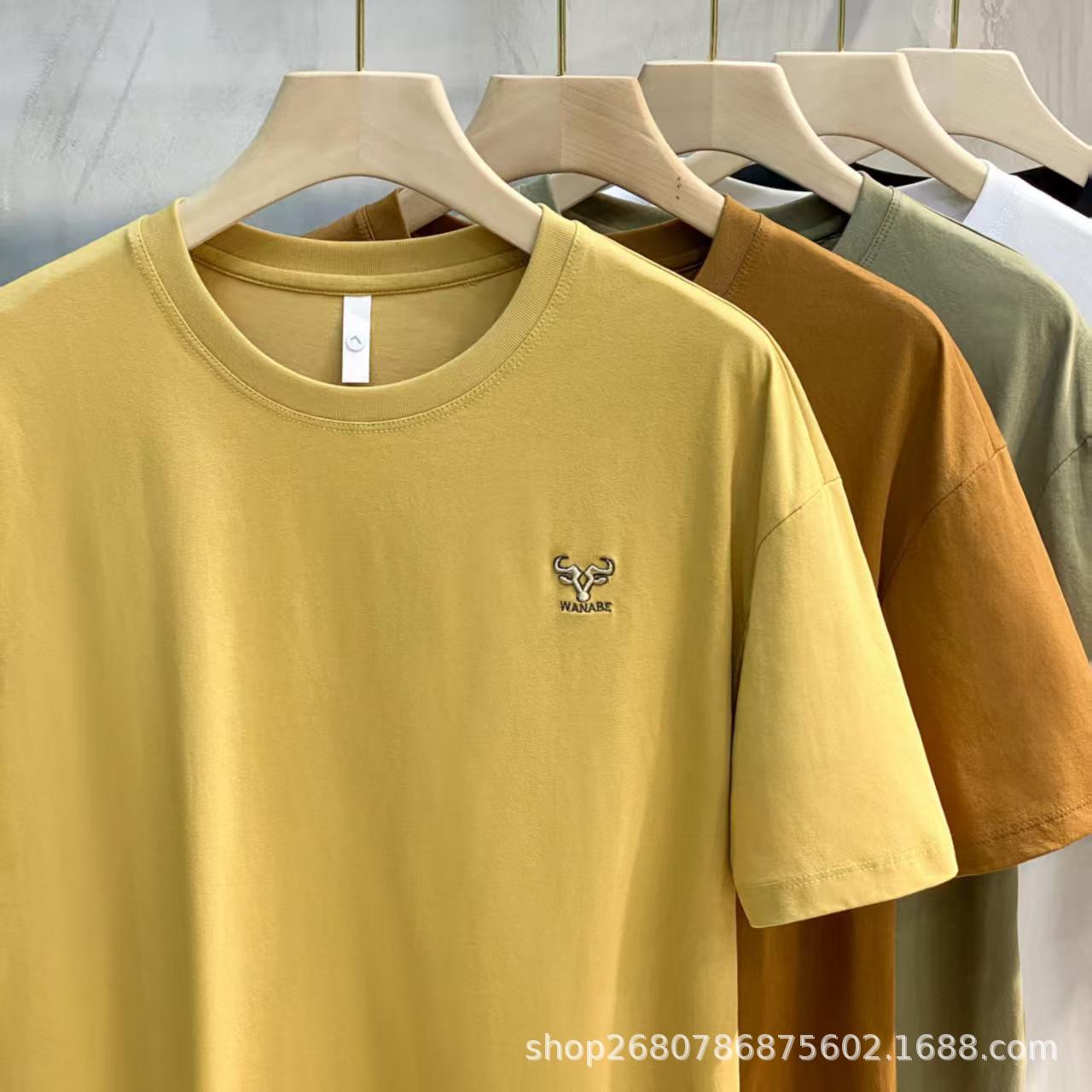 重磅精品质棉T恤男装短袖小标潮新款韩版男装宽松大码圆领打底T恤