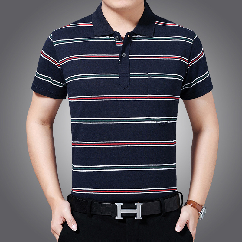 工厂真供男士纯棉体恤时尚条纹中年爸爸POLO衫休闲男装短袖上衣潮