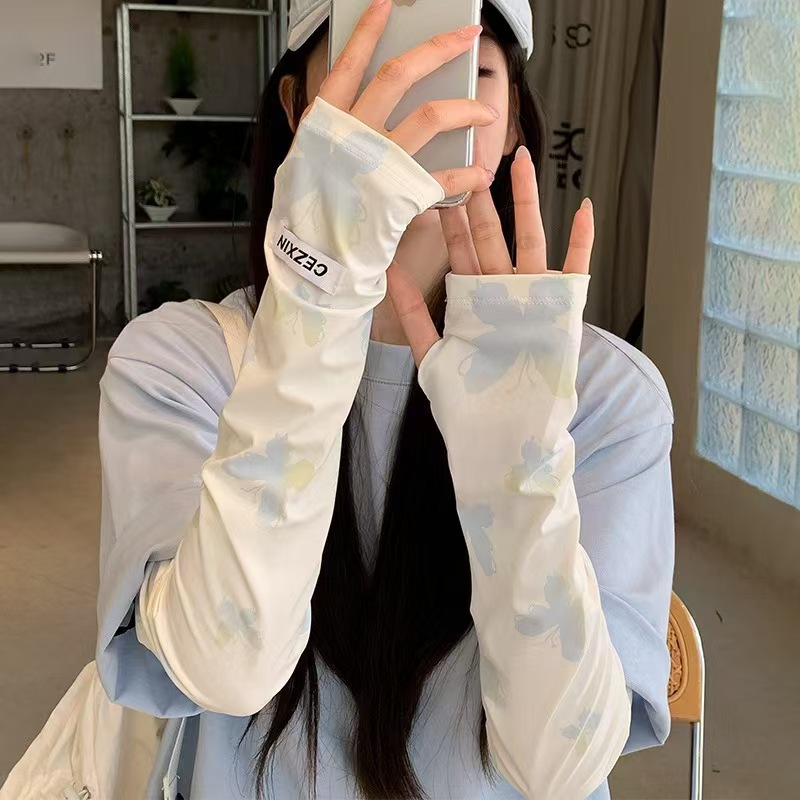 防晒冰袖女款夏季新款可爱防紫外线宽松手袖开车骑行手套冰丝袖套