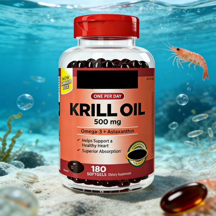 现货跨境专供 南极深海磷虾油 500mg*180 粒 含虾青素成人保健软