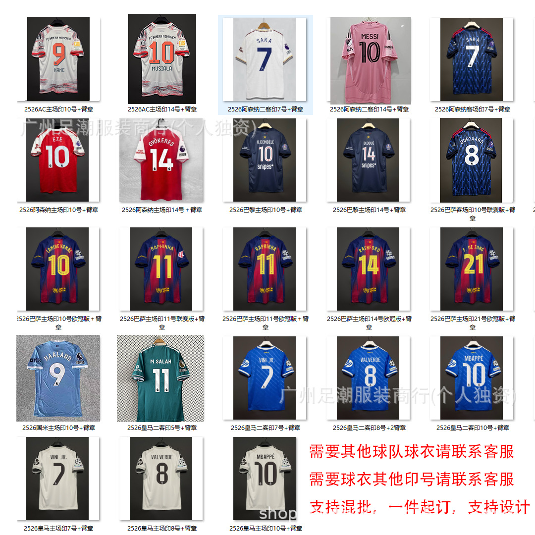 2526热门俱乐部球迷版足球服球衣巴黎皇马巴萨曼城阿森纳带印号