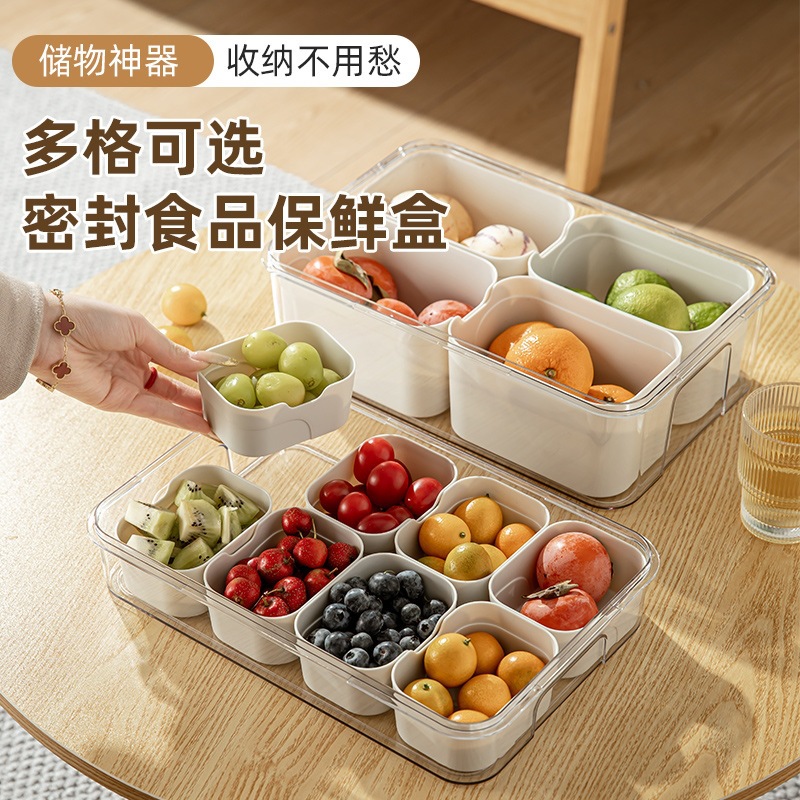 食品级手提保鲜盒 冰箱分格沥水收纳盒 水果蔬菜密封储物神器