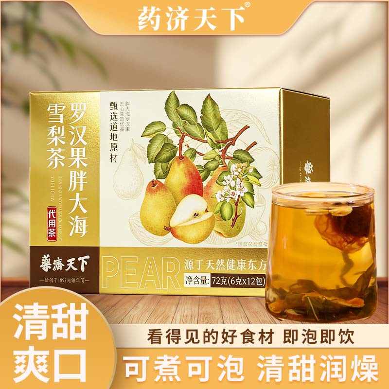 罗汉果胖大海雪梨茶72g/盒咽喉嗓干润养茶升级品质菊花组合养生茶