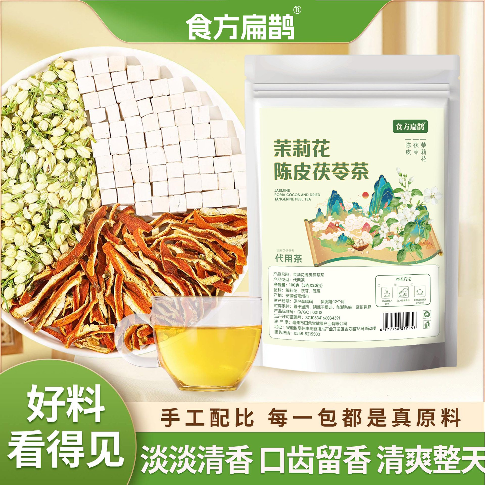 茉莉花陈皮茯苓茶100g/袋三角包原料看得见体香喝出来现货可代发