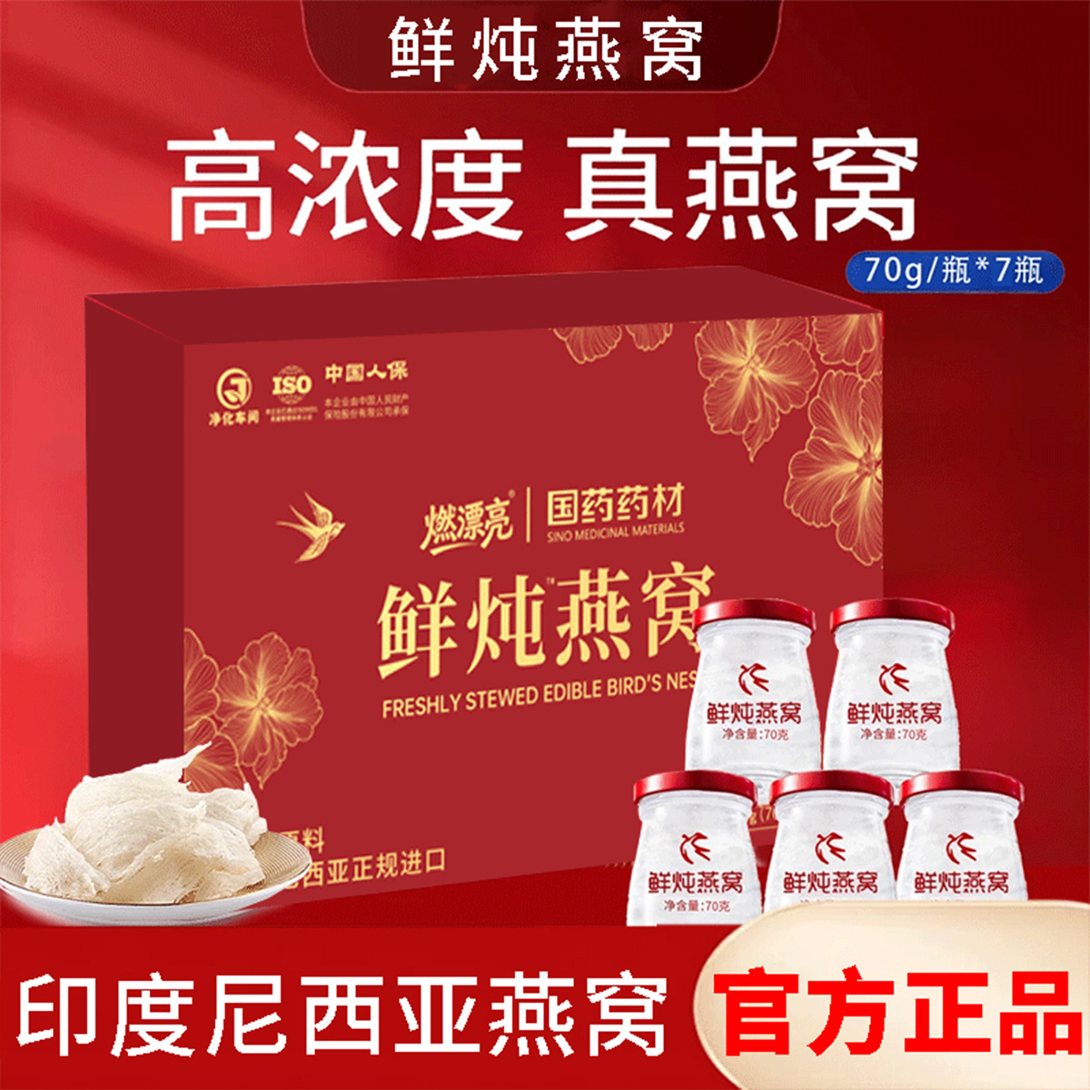 鲜炖燕窝即食燕窝70g*7瓶 礼盒滋补人参燕窝批发工厂,一件代发
