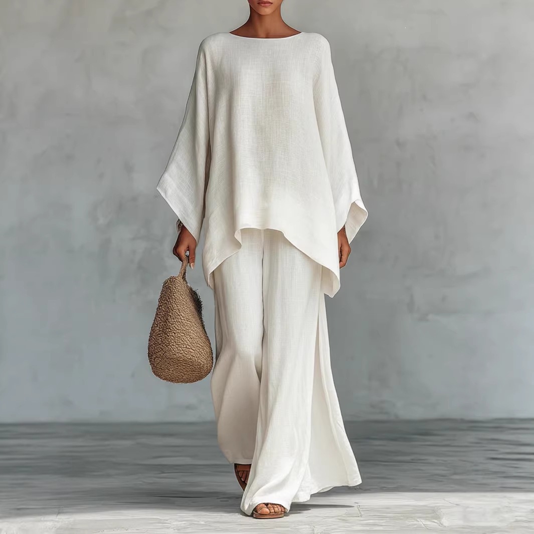 新款亚马逊2026欧美跨境新款女士优雅简约宽松纯色衬衫阔腿裤套装