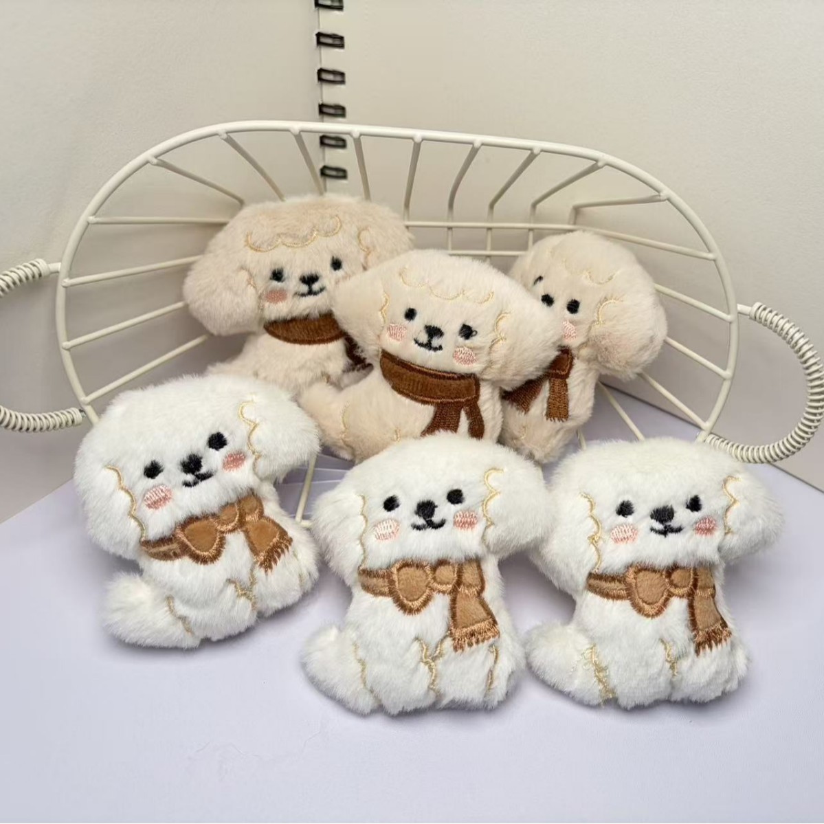 软萌刺绣小狗毛绒挂件2色 围巾款卡通玩偶 书包挂饰/钥匙扣/配饰