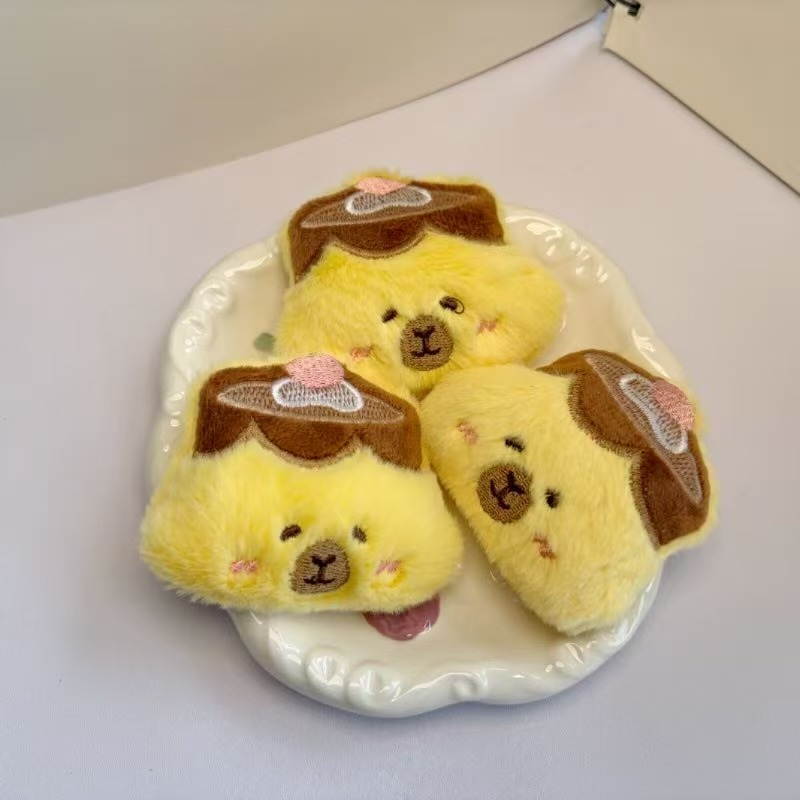 创意毛绒布丁玩偶挂件吱吱叫钥匙扣冰激凌卡皮巴拉diy胸针文具