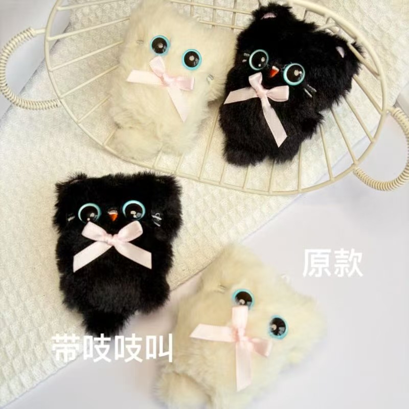创意网红可爱小猫挂件吱吱叫毛绒公仔少女心玩偶黑猫玩偶解压挂件