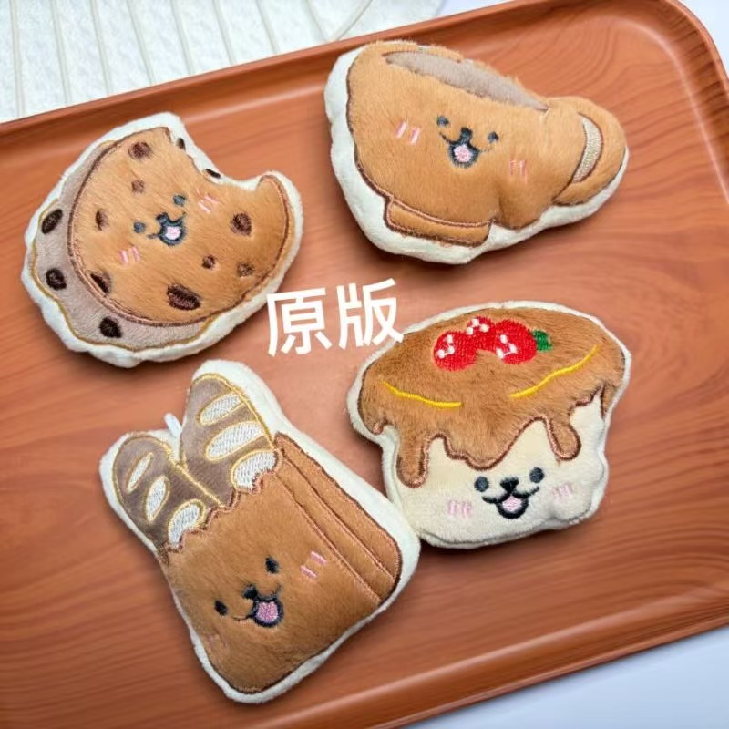 原创卡通毛绒食物造型公仔挂件胸针法棍面包牛角包曲奇玩偶批发