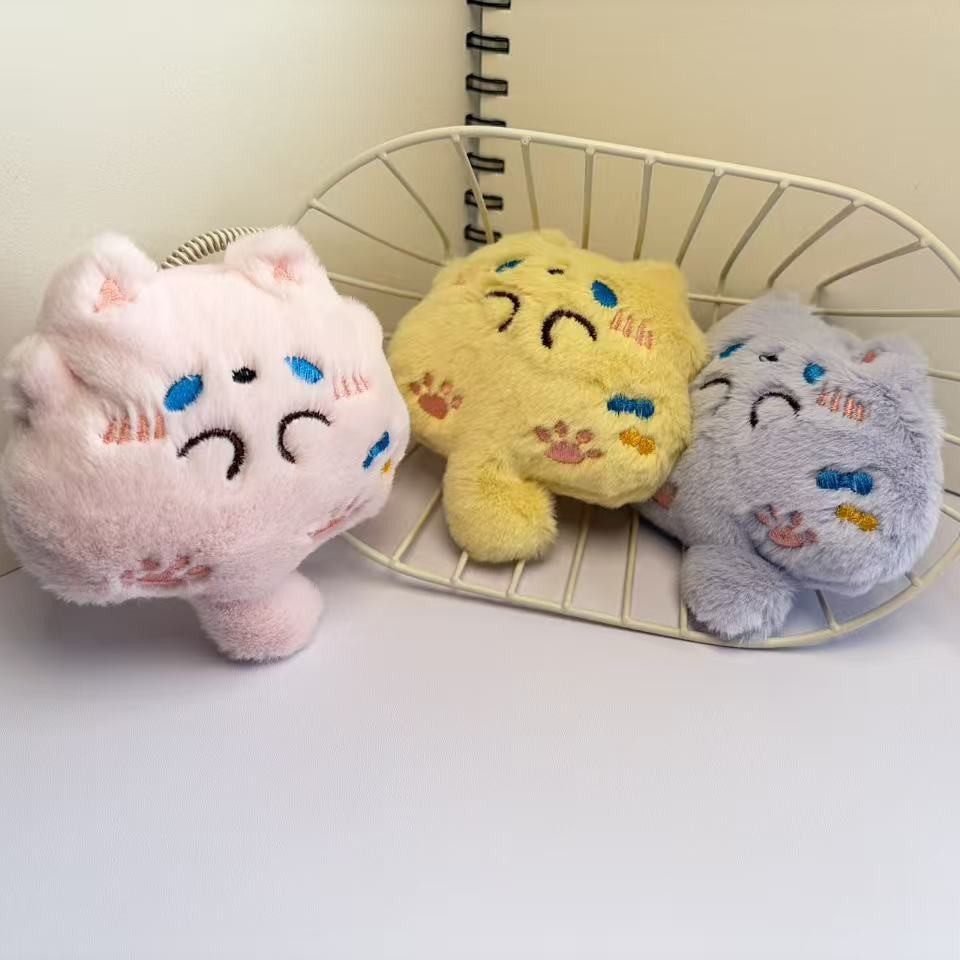 蛋糕托腮红猫毛绒挂件 可爱卡通猫咪胸针 创意包包挂饰钥匙扣配件