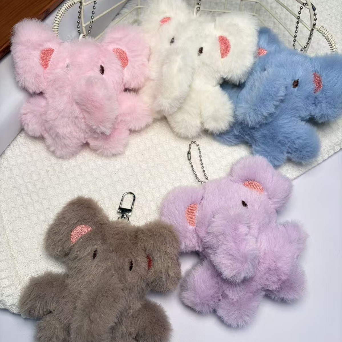 2026新款毛绒公仔吱吱叫挂件可爱立体卡通小象玩偶挂件钥匙扣手机