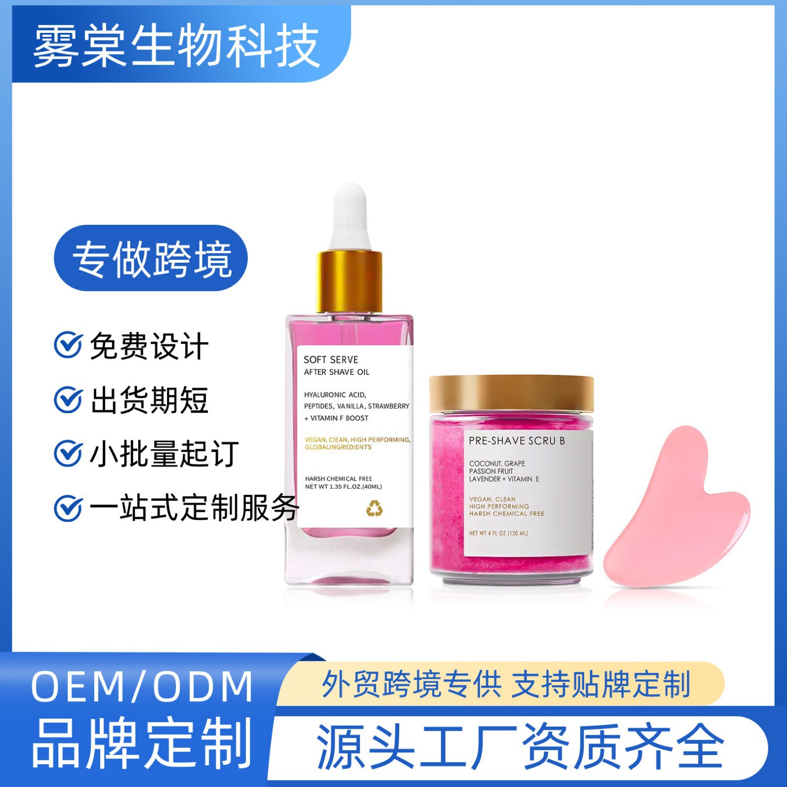 跨境无标植萃配方温和优润草莓留香不刺激剃须护理三件套装