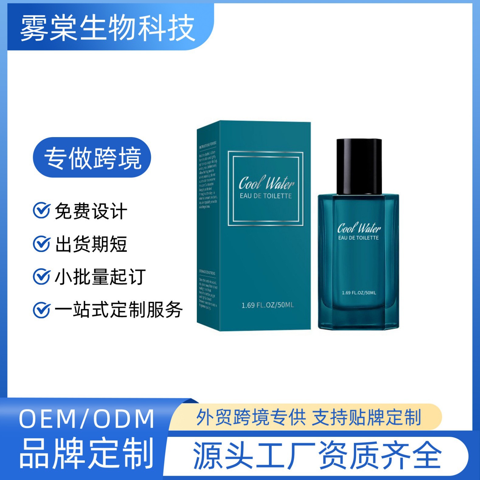 跨境无标香水正装男士海洋蔚蓝淡雅持久留香喷雾50ml外用全身清爽