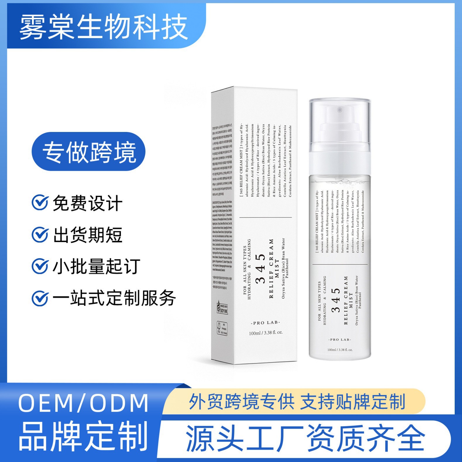 跨境新品无标345舒缓喷雾滋润保湿柔嫩肌肤改善皮肤暗沉便携式