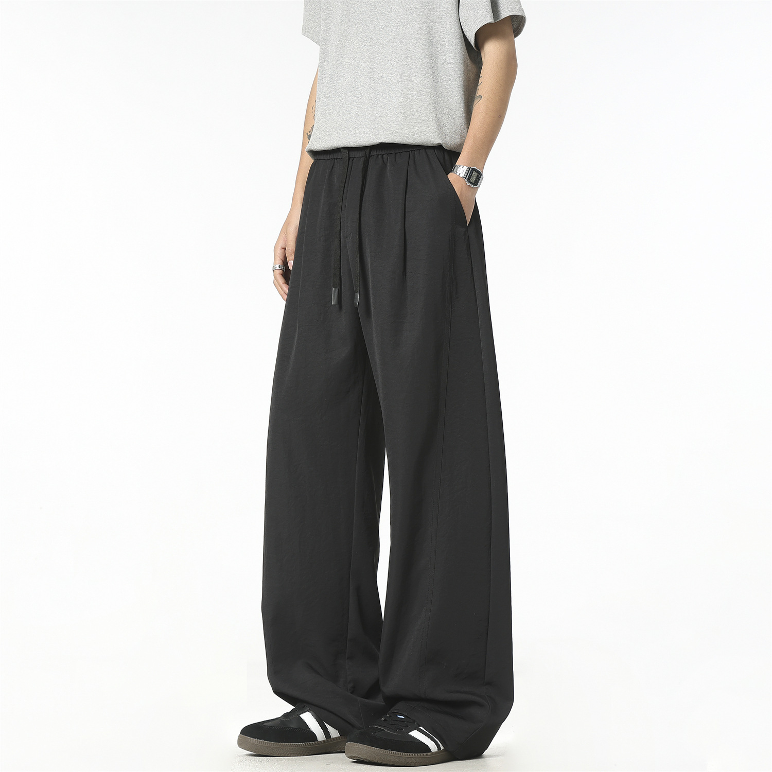 "凉感呼吸"美式冰丝弯刀裤男女垂感阔腿西裤松弛百搭宽松休闲裤
