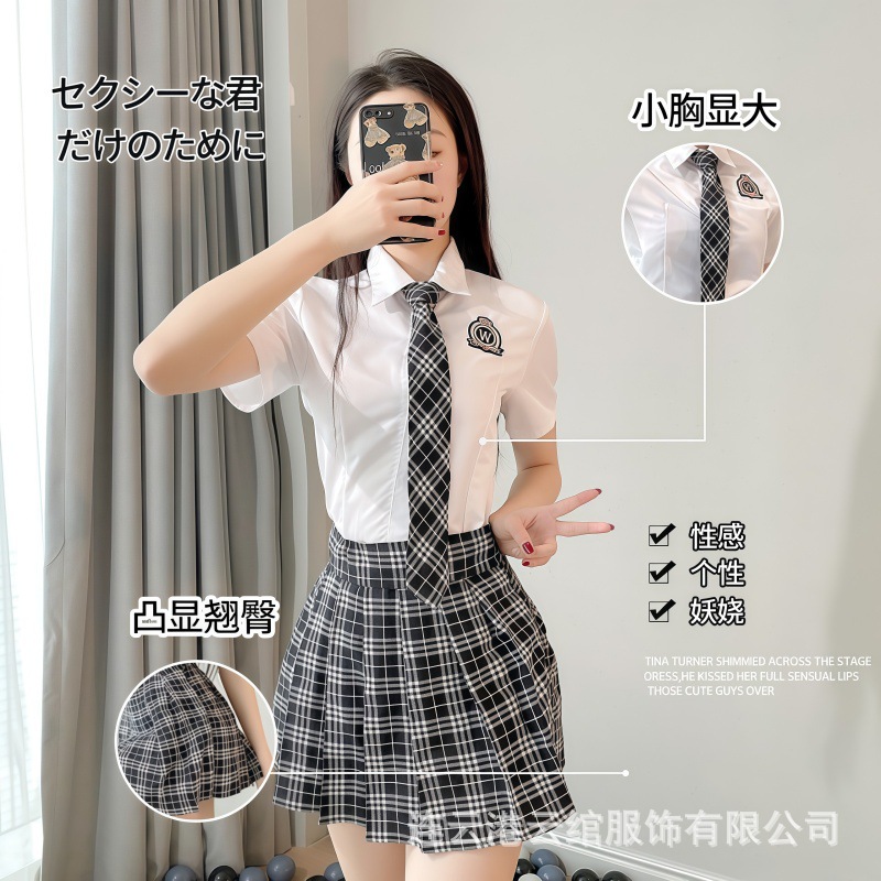 云绾学院风情趣内衣性感纯欲风白衬衫格纹百褶裙制服套装辣妹诱惑