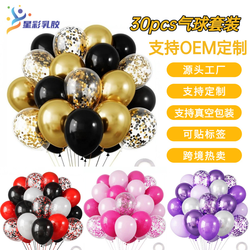 跨境30pcs金属亮片气球套装生日派对典礼装饰彩色气球套装批发