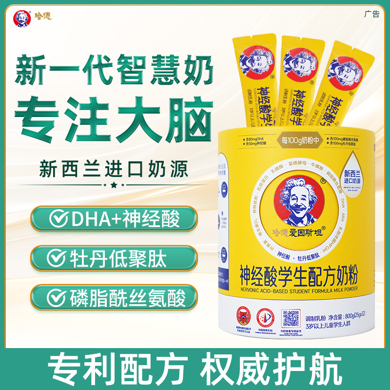 哈德爱因斯坦神经成长学生配方奶粉儿童高钙青少年DHA罐装