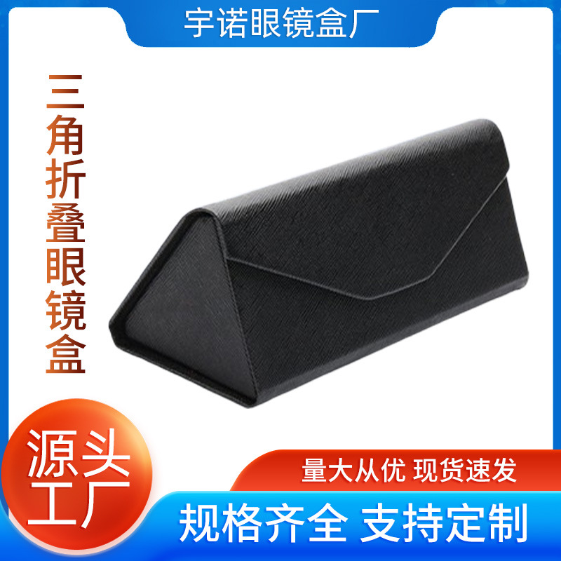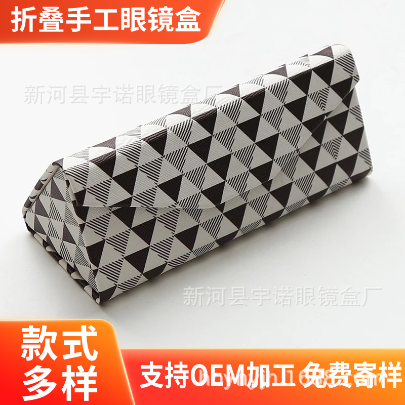 2025新款三角折叠眼镜盒黑色手工复古太阳镜盒可印LOGO厂家批发