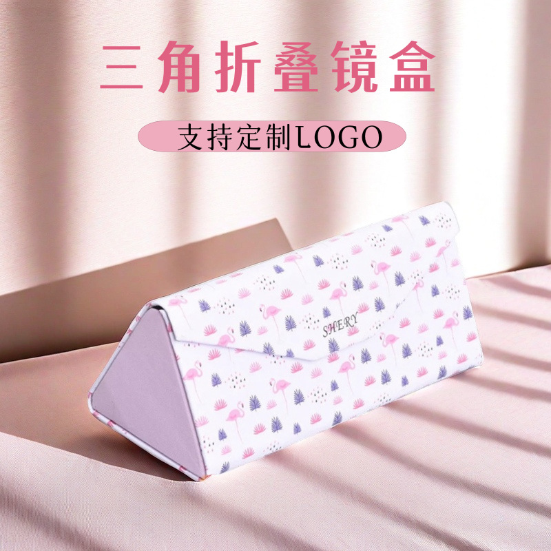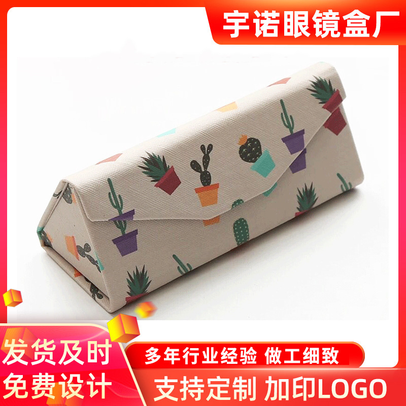 新款折叠手工眼镜盒清新时尚印花学生三角墨镜厂家批发制作收纳盒