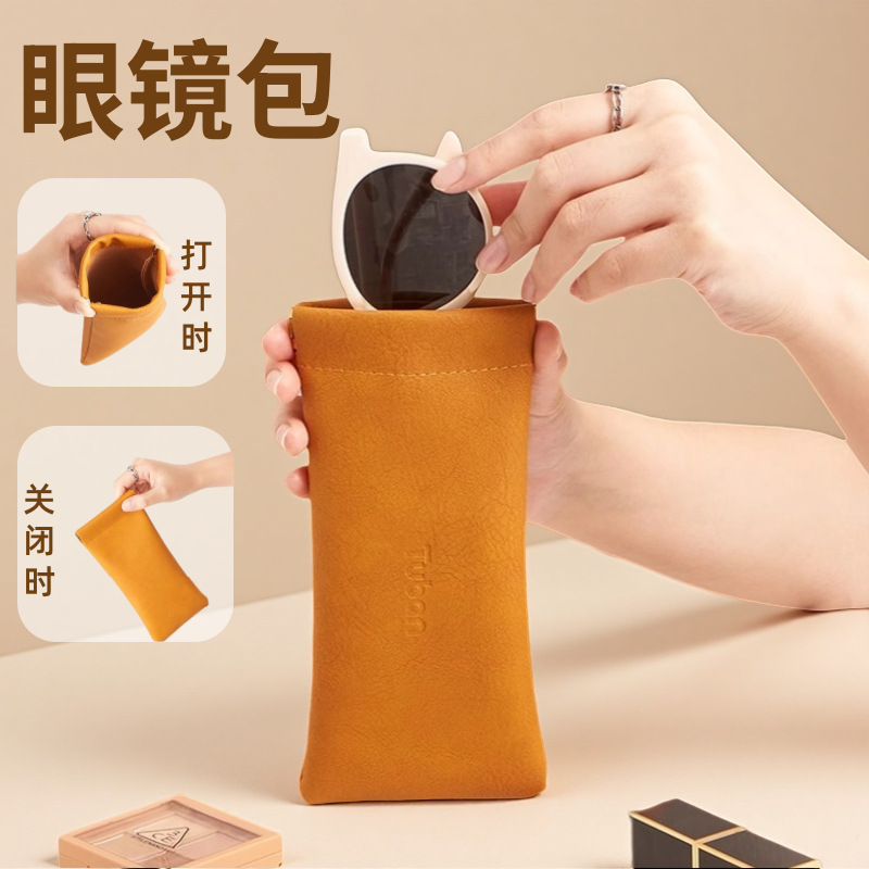 现货批发ins风小羊皮眼镜袋太阳镜近视镜保护套弹片设计防压收纳