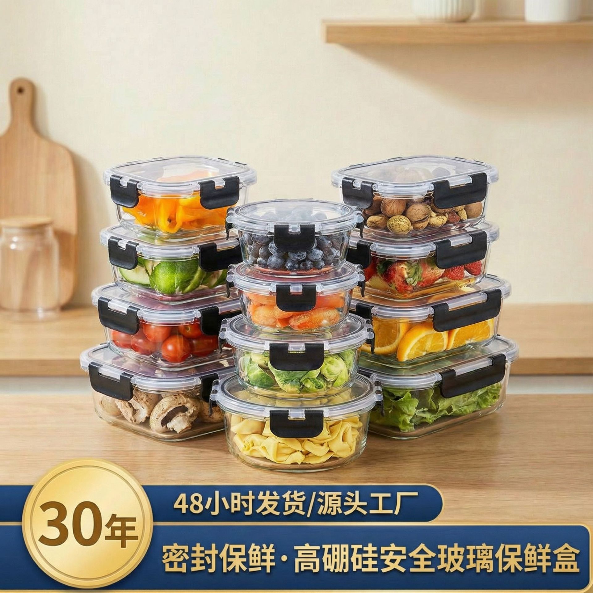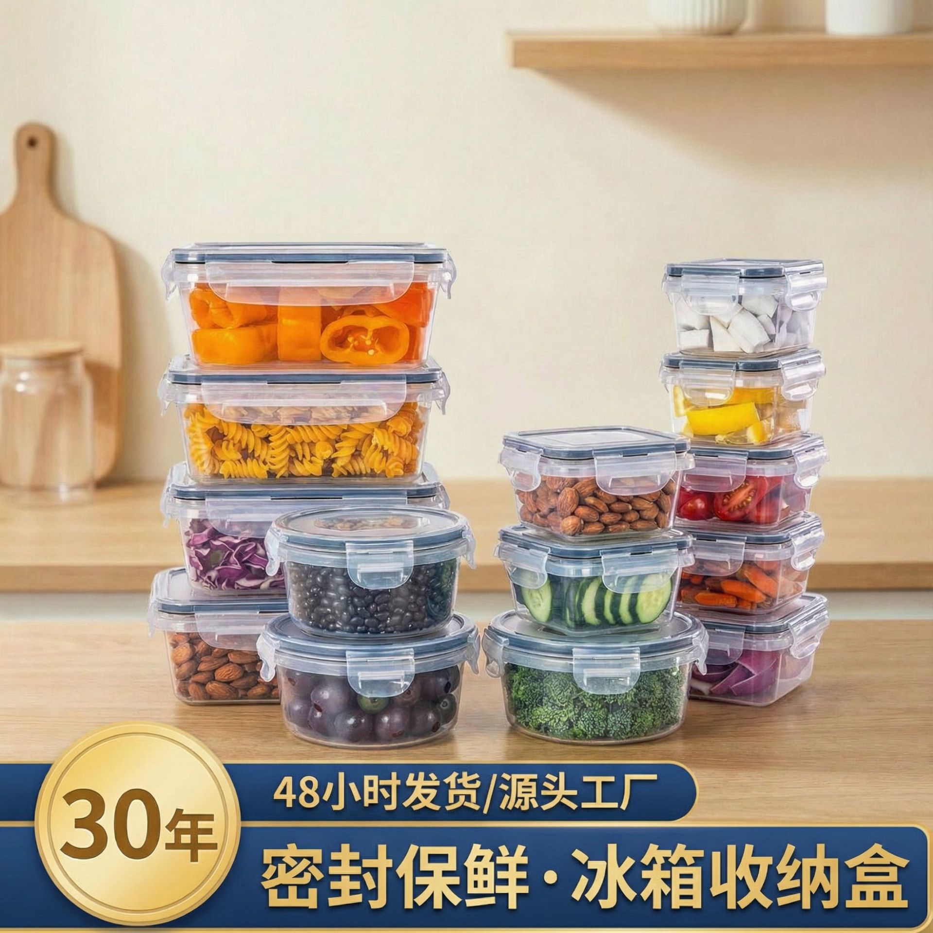 亚马逊20件套保鲜盒五谷杂粮厨房饭盒大容量食品级塑料零食保鲜盒