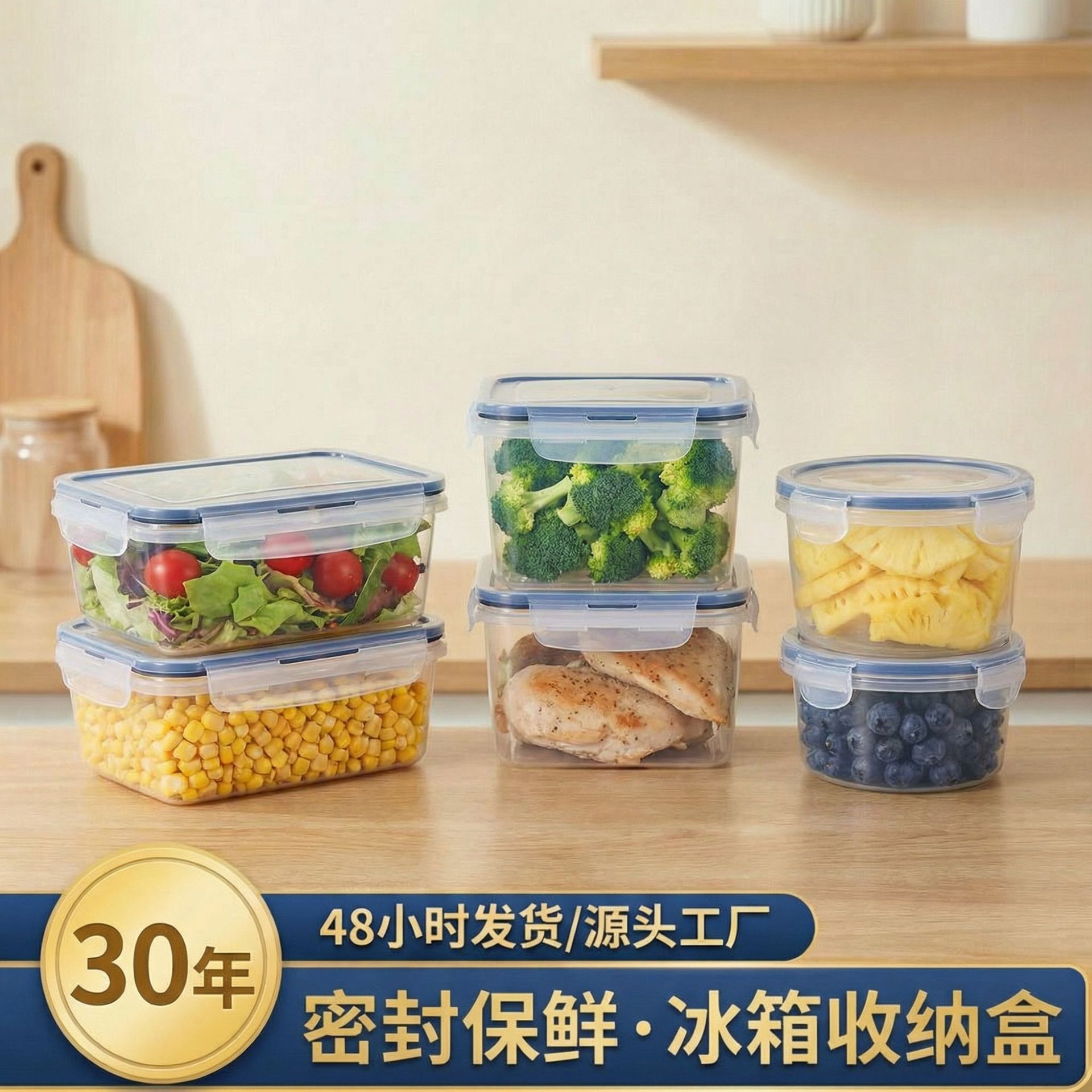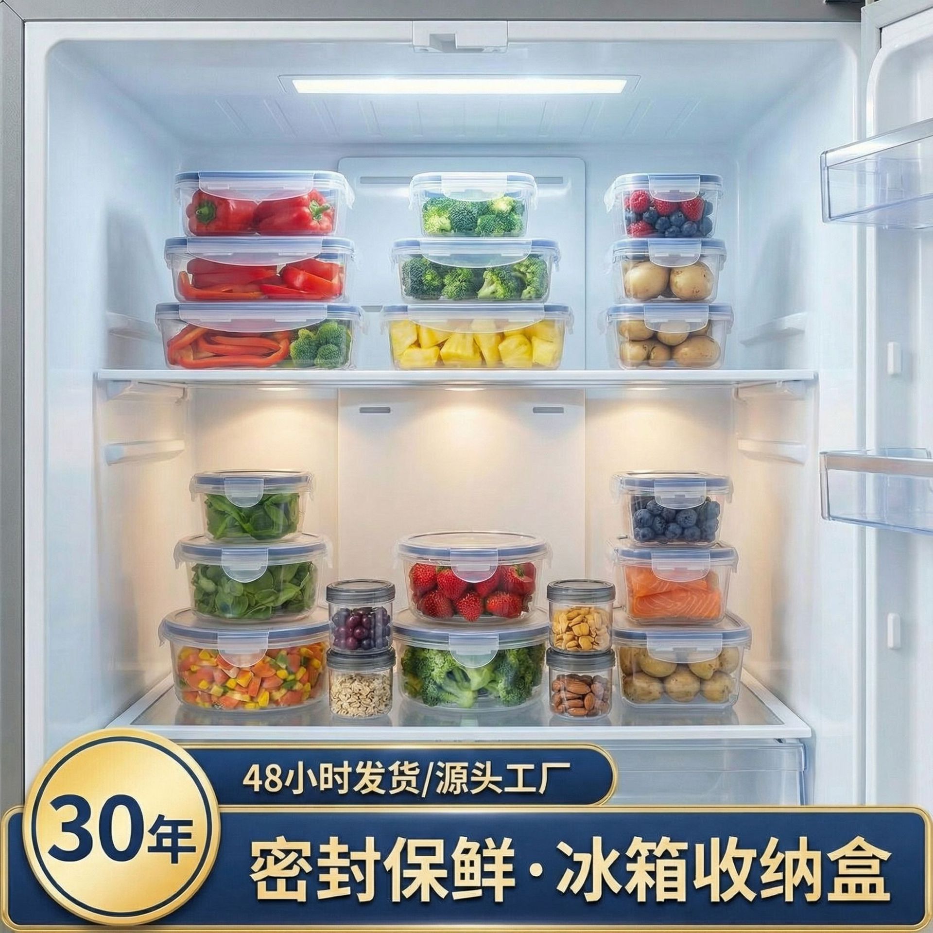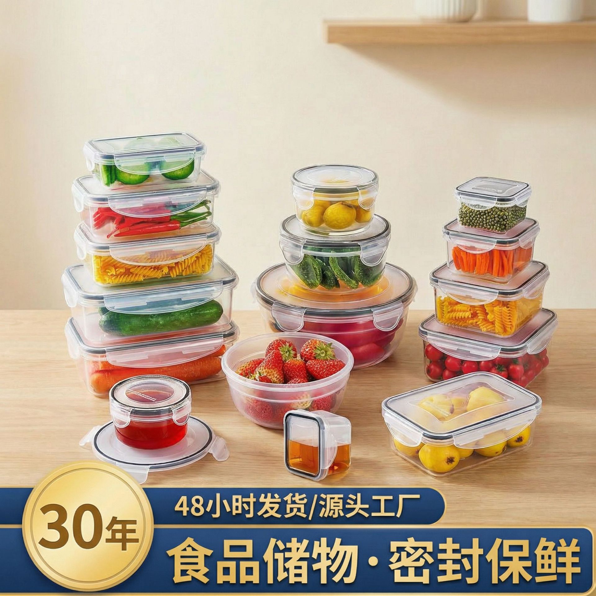 跨境冰箱食品塑料34件套保鲜盒密封可用微波炉厨房储物透明收纳