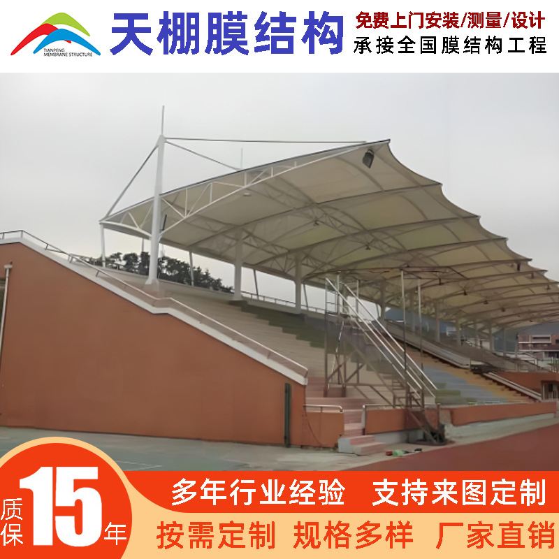 膜结构体育看台棚室外大跨度遮阳棚运动场看台挡雨棚厂家测量施工