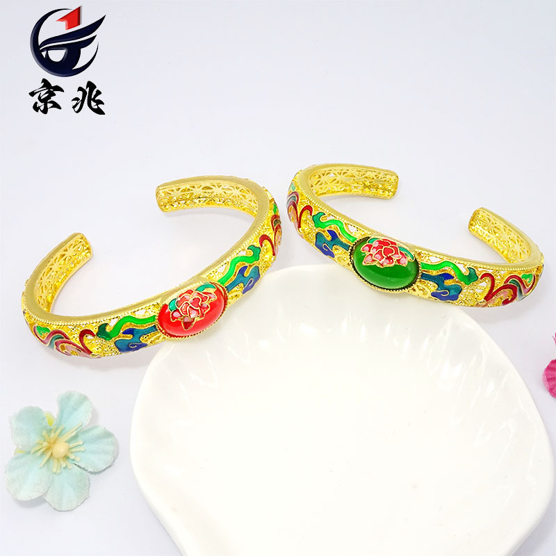 古法金烧蓝珐琅彩掐丝手镯女颜如玉开口景泰蓝微镶玉髓玛瑙底托