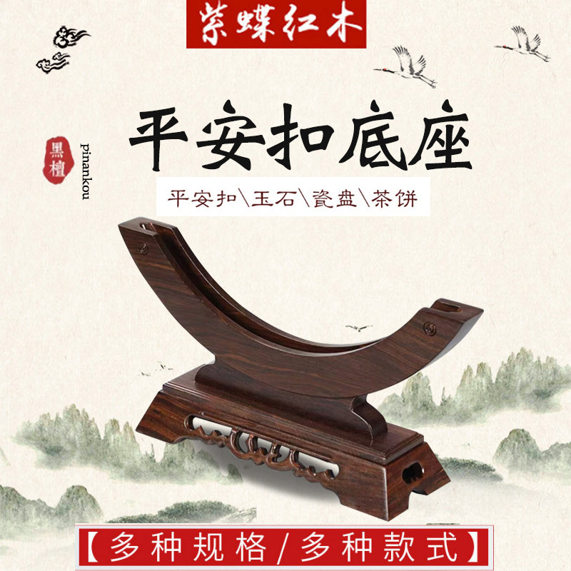 平安扣实木底座红木黑紫檀茶饼瓷盘圆形摆件置物架玉石玉璧玉片架