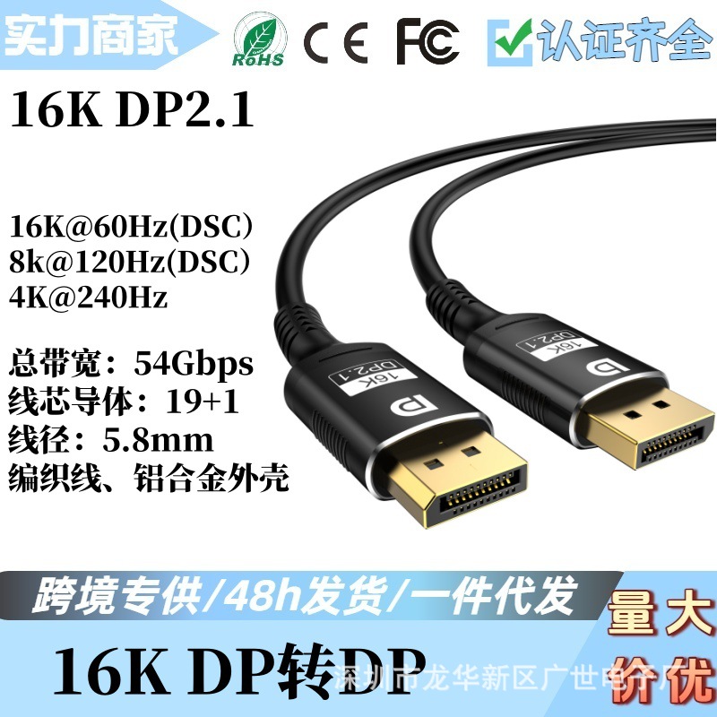 16K DisplayPort2.1 @30 8K120Hz(DSC)80Gbs带宽高清高刷DP2.0线