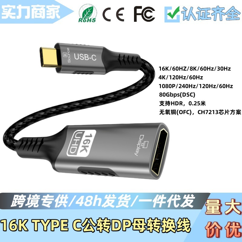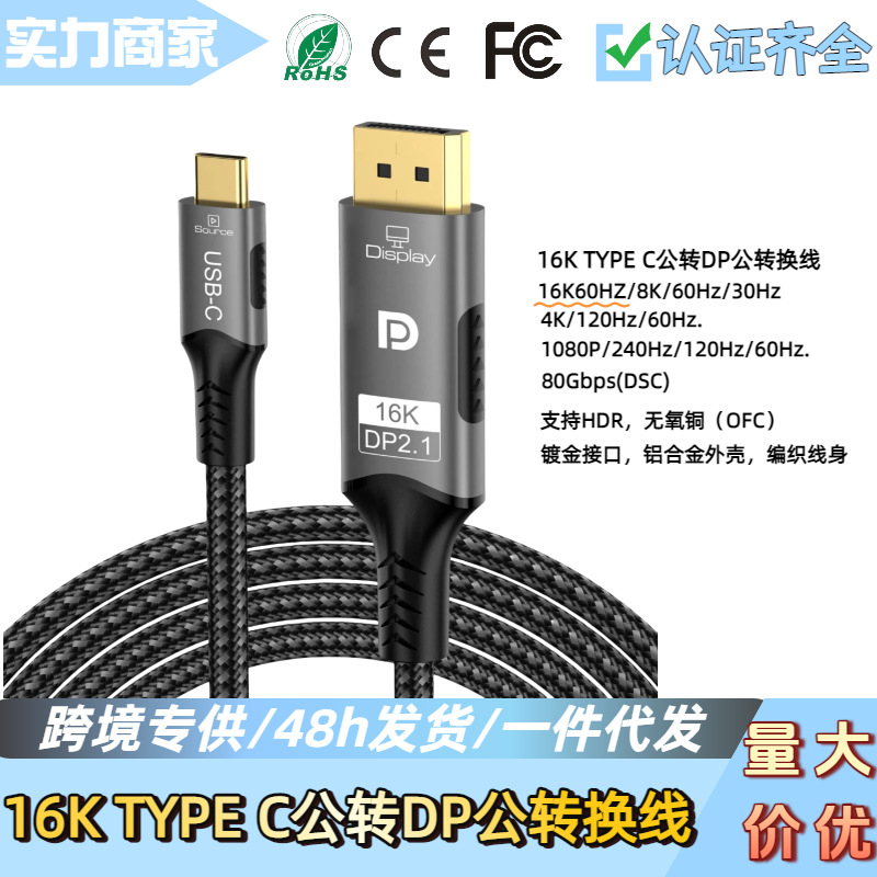 16K TYPE C公转DP公转换线8k4k高清视频传输电脑电视显示器转接线