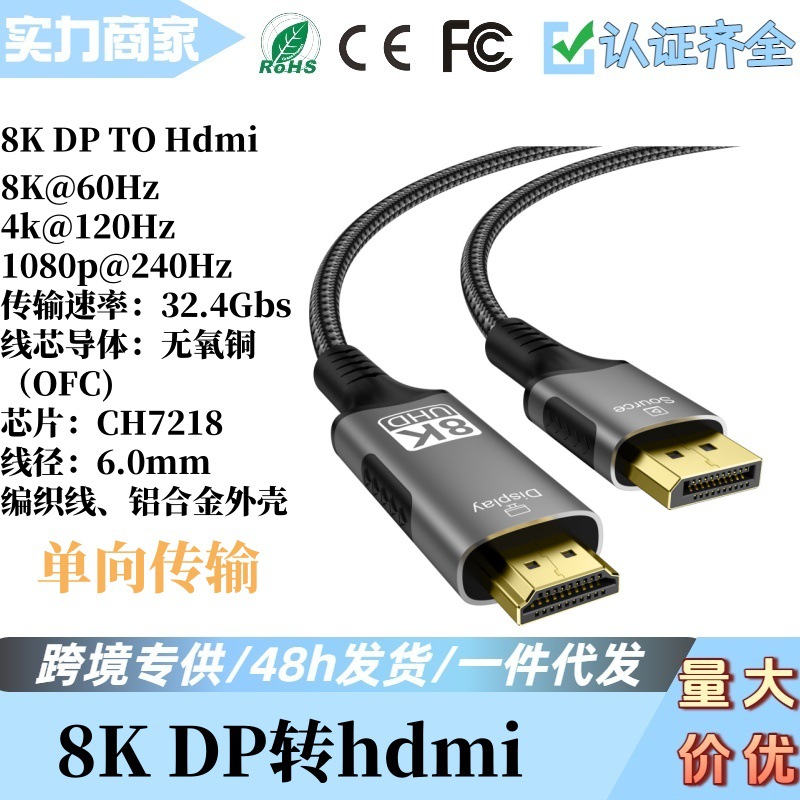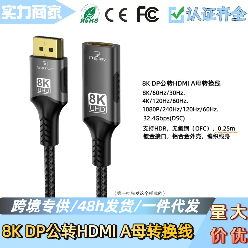 8KDisplayport1.4公转HDMI2.1公连接线电脑电视投影8K信号投影仪
