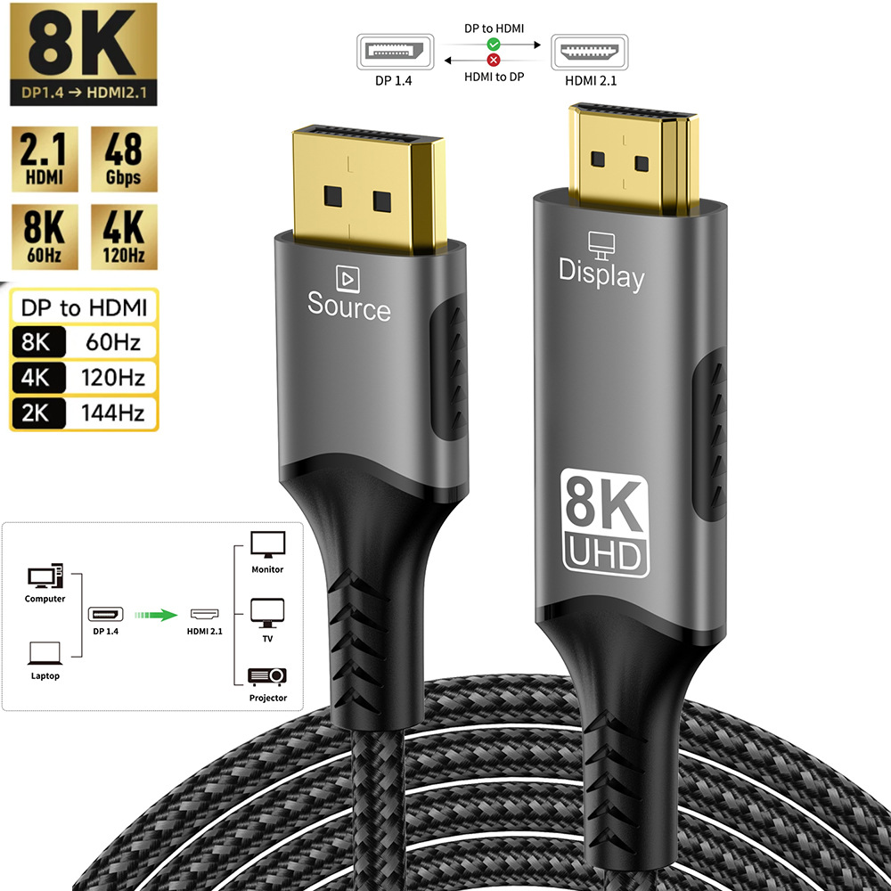 8K60HzDP1.4公转HDMI 2.1公高清连接线电脑电视投影数据转接线4K