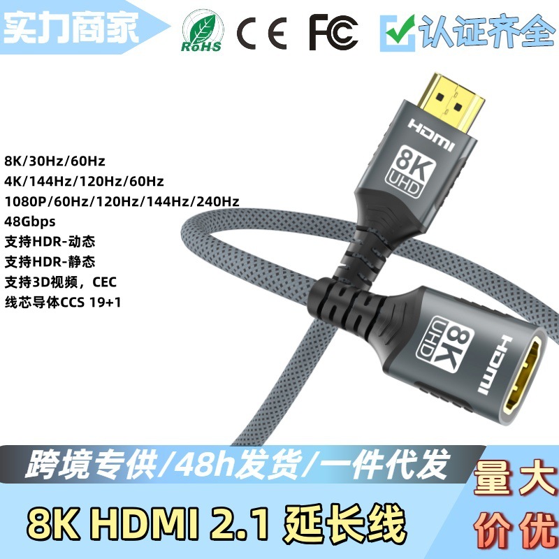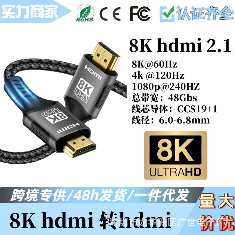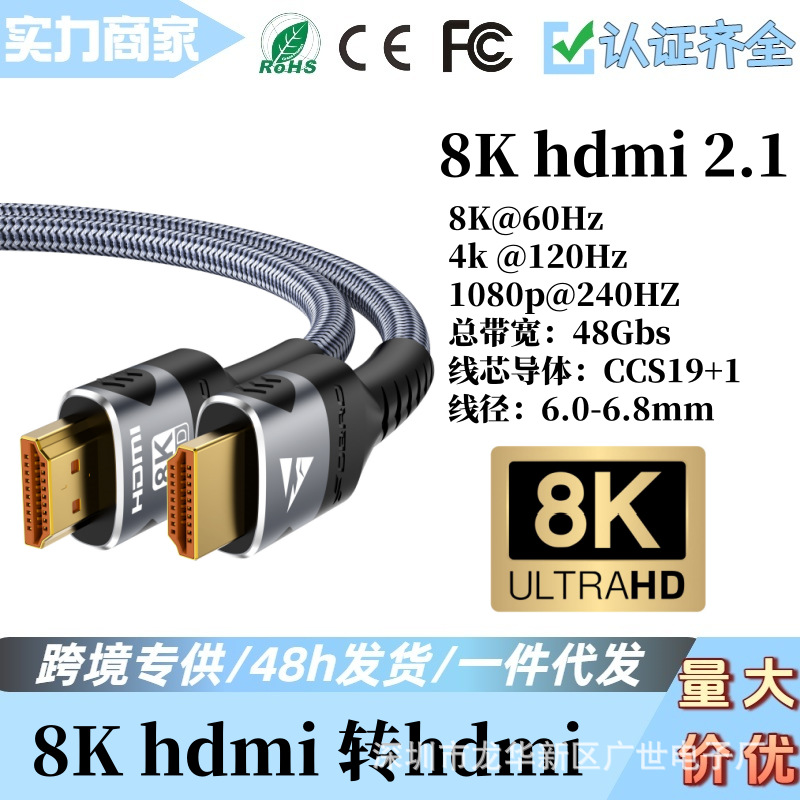 16k HDMI 2.2高清线16K30Hz60Hz(DSC)8k120Hz 4K 240Hz超高清线