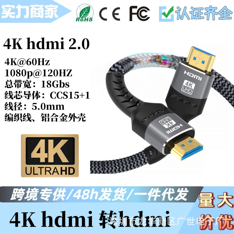 HDMI高清线4K60HZ 编织带 FDBRO HDMI 2.0高清线