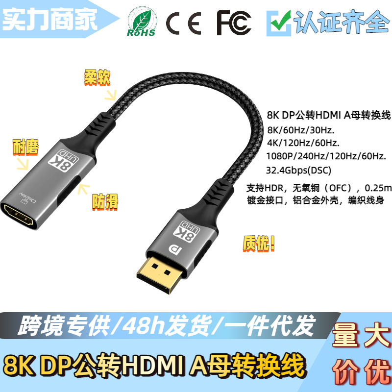 8k/60Hz DP公转HDMI-A母转换线高清线视频线显示器延长线铝壳编织