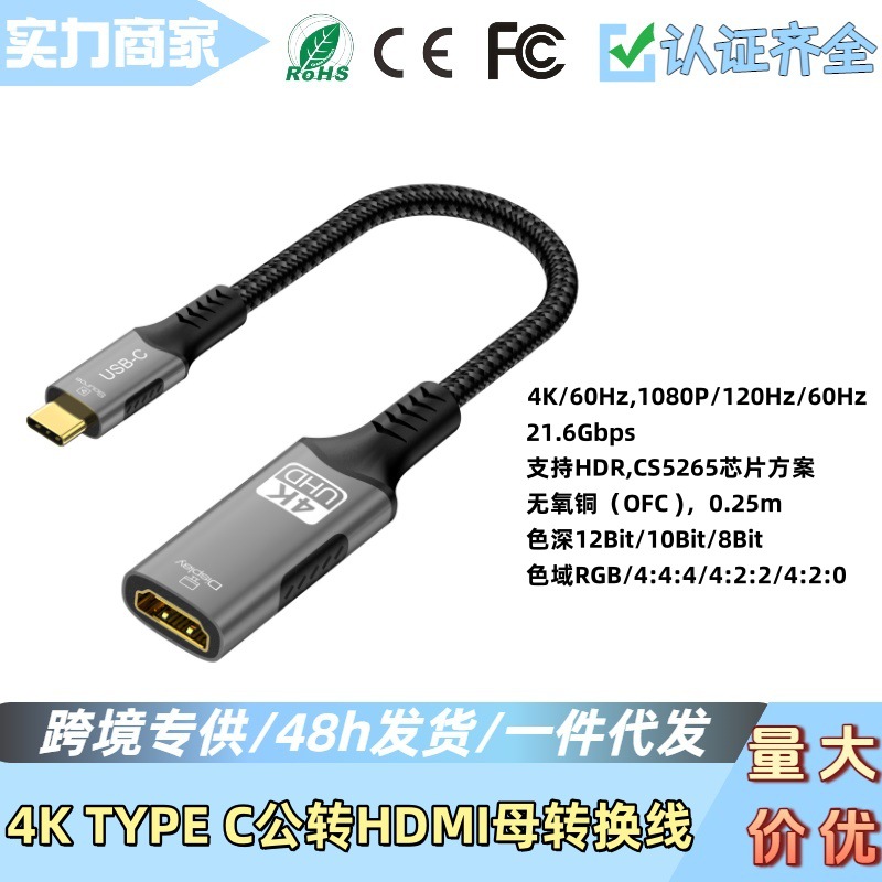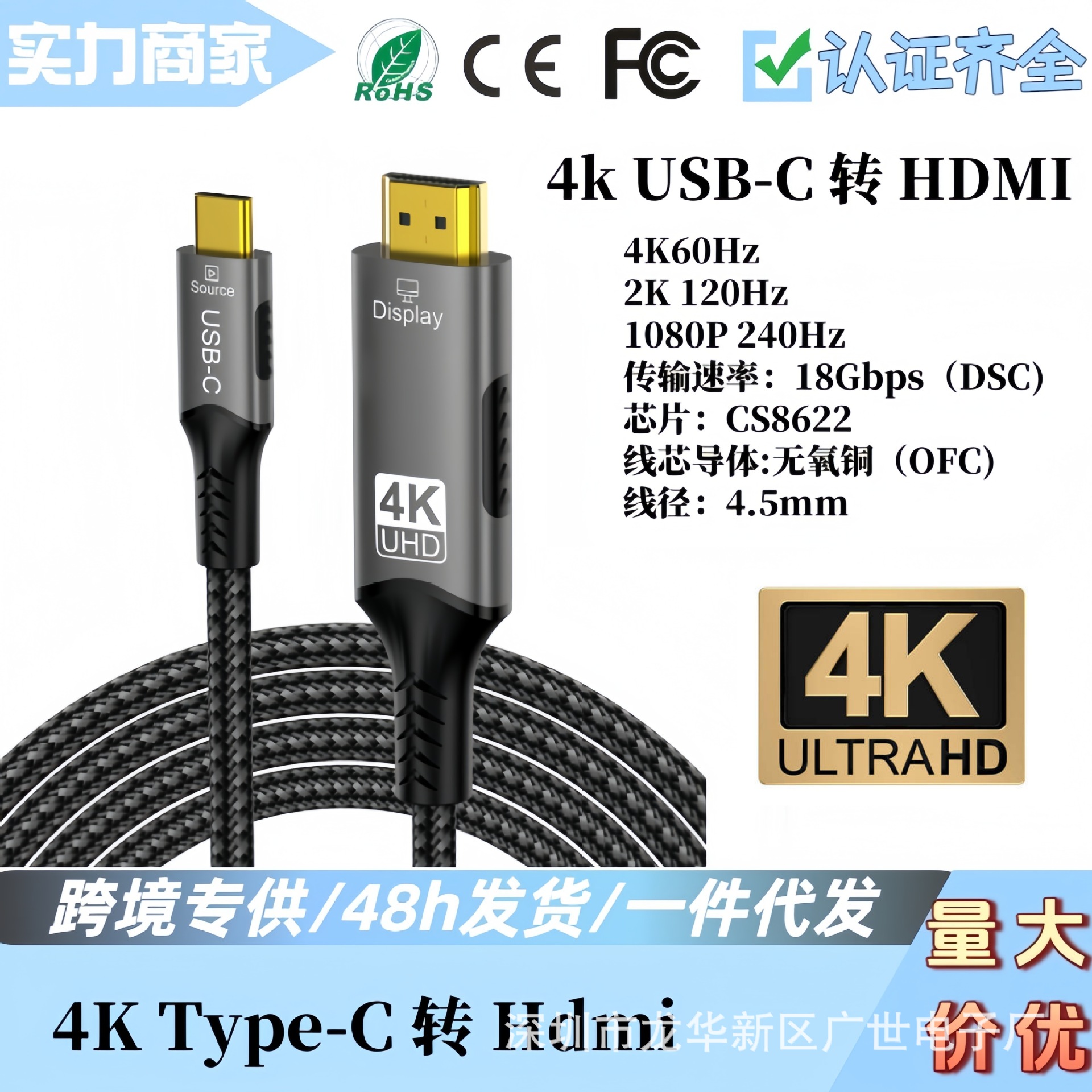 4K60HZ Type-C公单向转HDMI转换线数据线转接线4K适用电脑手机ipa