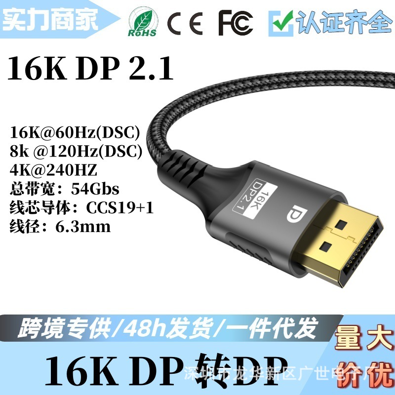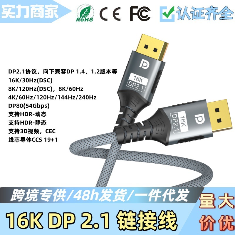 16KDisplayPort2.1 DP公转DP公 16K60Hz/ 8K144Hz编织带 DP2.0