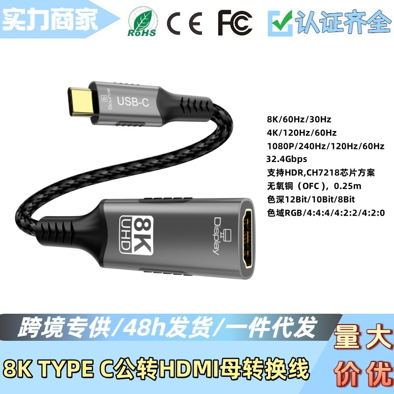 8K30Hz高清转换器 Type-C公转HDMI母 2.1版视频转换线 支持手机平
