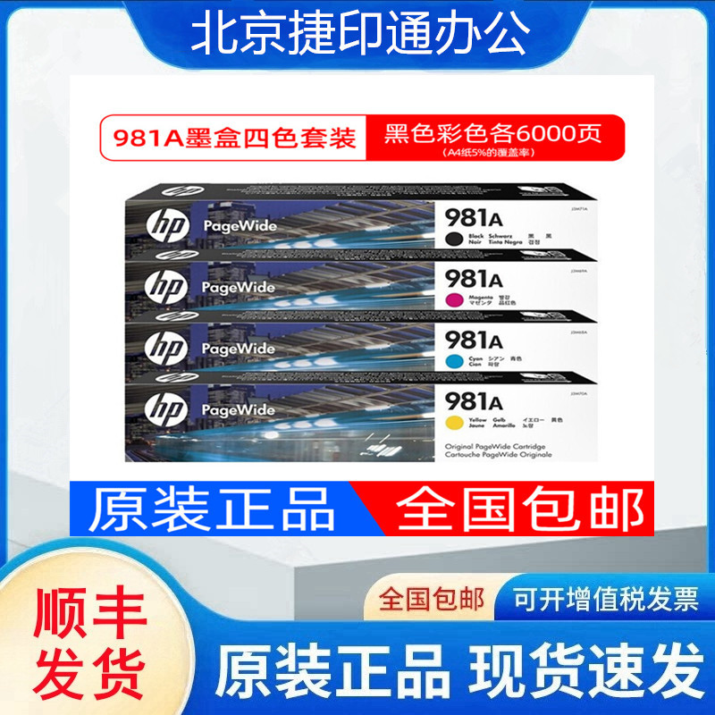 原装惠普HP981A墨盒981X大容量黑彩 J3M71A pro X556DN 586DN墨水